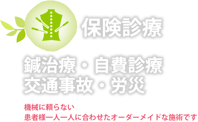 電気治療や背骨矯正、鍼などの手技施術を行います。
